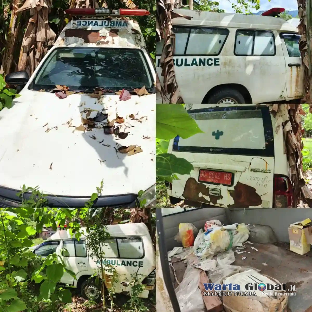 Hal-Sel, WARTAGLOBAL.id—Di Kecamatan Bacan Timur, Desa Sayoang, berdiri satu pemandangan yang mengiris nurani, sebuah ambulans simbol harapan dan keselamatan tergeletak mati di pinggir jalan Arah babang ke Sayoang, posisi mobil tersebut dekat bangunan SMP. Catnya kusam, bodinya rusak, dan rumput liar mulai merangkul mobil tersebut. Kamis, 27/11.