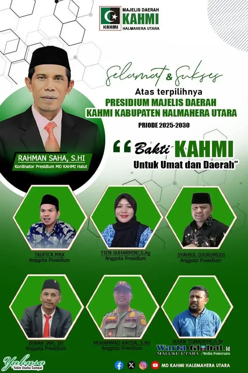 Tobelo, WartaGlobal.ID - Majelis Daerah Korps Alumni Himpunan Mahasiswa Islam (MD KAHMI) Kabupaten Halmahera Utara sukses menggelar Musyawarah Daerah (Musda) ke-III. Kegiatan yang berlangsung di Hotel Greenland Tobelo pada Rabu, 3 Desember 2025 ini menetapkan tujuh orang presidium terpilih yang akan menakhodai organisasi untuk periode 2026-2031.