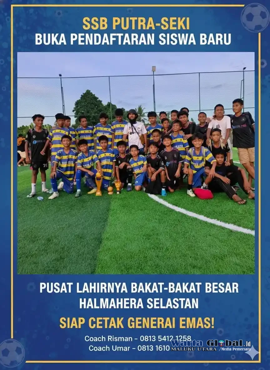 Hal-Sel, Wartaglobal.id — Deru ambisi besar kembali bergema dari dunia sepak bola Halmahera Selatan. SSB PUTRA SEKI, akademi yang dikenal sebagai pabrik pemain berbakat, resmi membuka pendaftaran siswa baru untuk usia 9 - 18 tahun. Ini bukan sekadar pembinaan - ini adalah gerakan besar mencetak masa depan sepak bola daerah, Minggu 30/11.